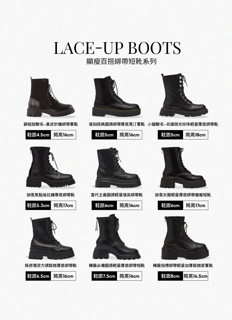 薛妞妞聯名-真皮針織綁帶軍靴 黑