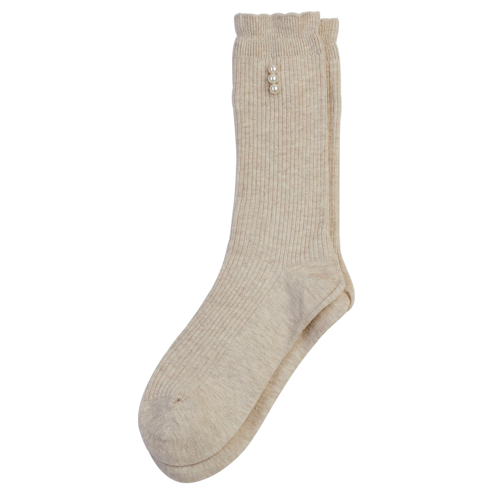 珍珠小花條帶魔鬼氈芭蕾舞瑪莉珍鞋 米白