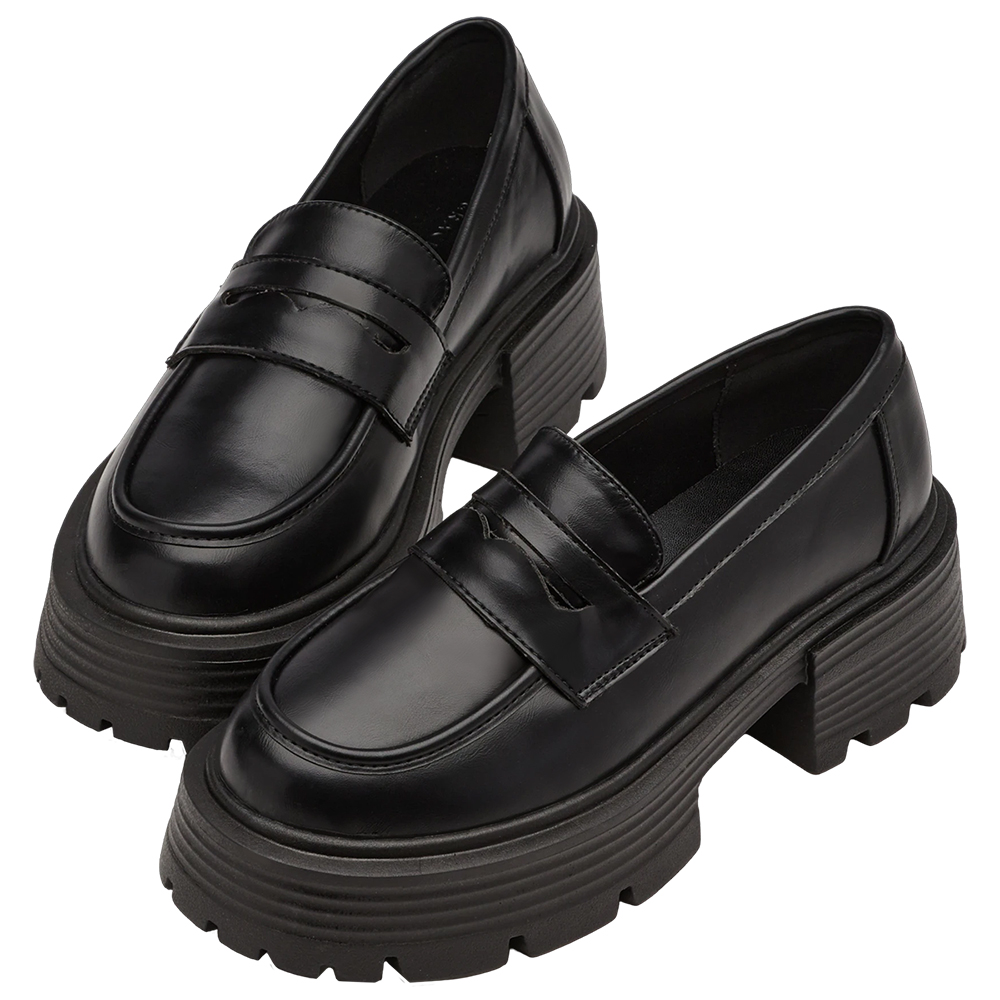 校花穿搭愛心扣輕量厚底樂福鞋 黑漆