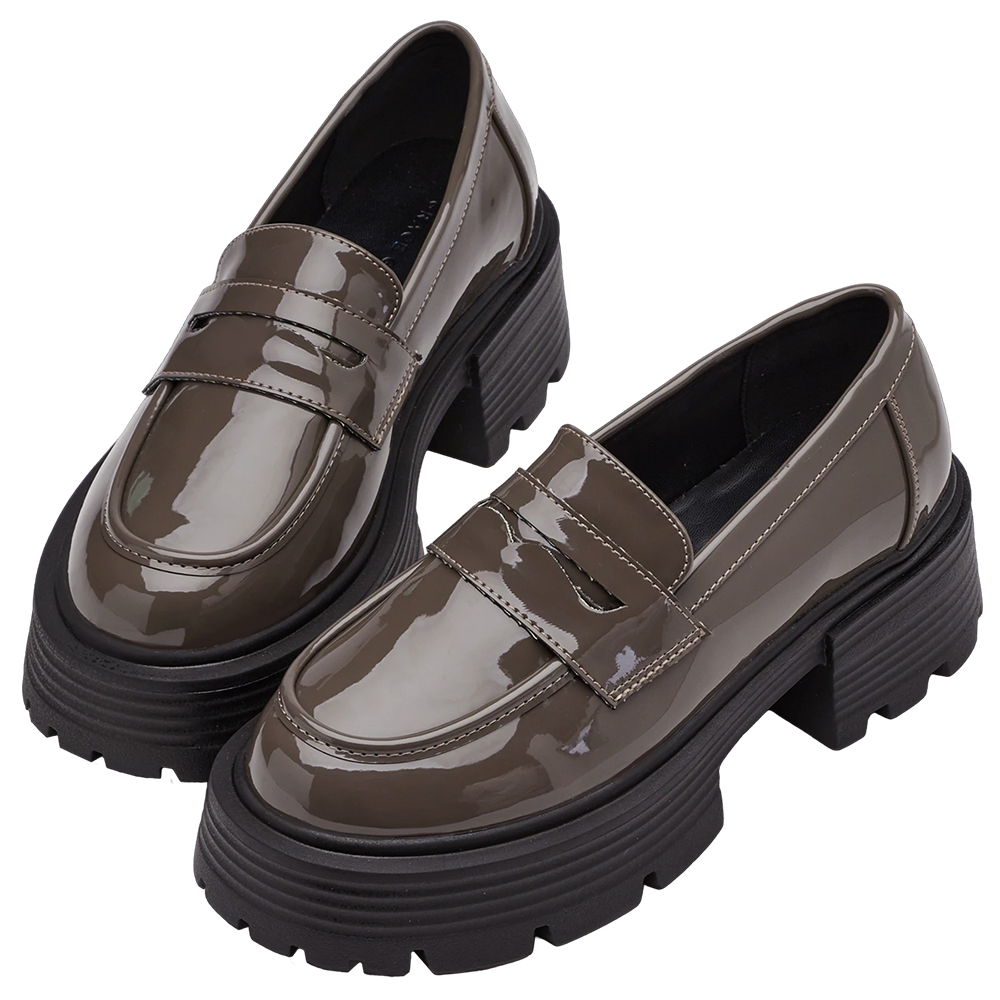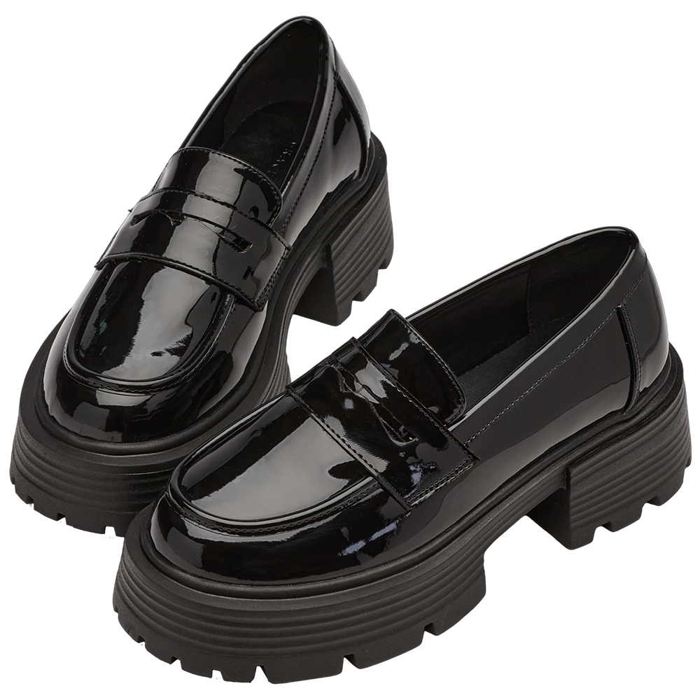 經典馬銜扣輕量厚底樂福鞋 黑漆
